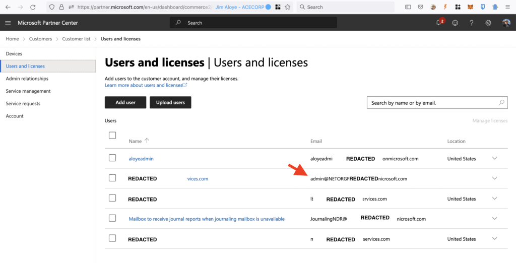 - Here you should see a user label with admin@.onmicrosoft.com Ex: