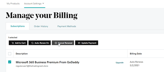 - Cancel the GoDaddy subscription in the GoDaddy admin portal.