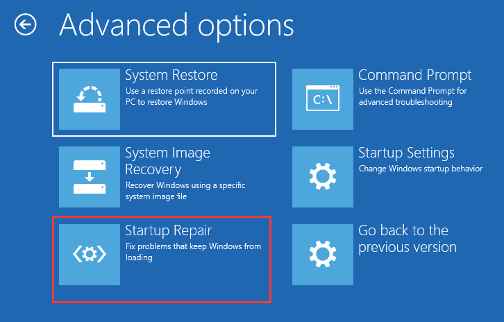 To do this, enter WinRE. Then, go to Choose an option > Troubleshoot > Advanced Options > Startup Repair.