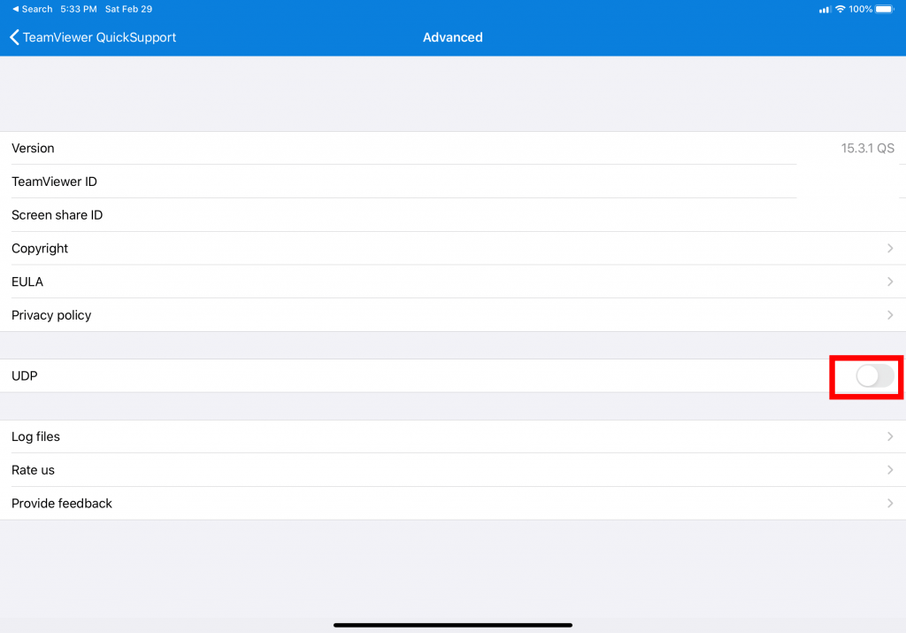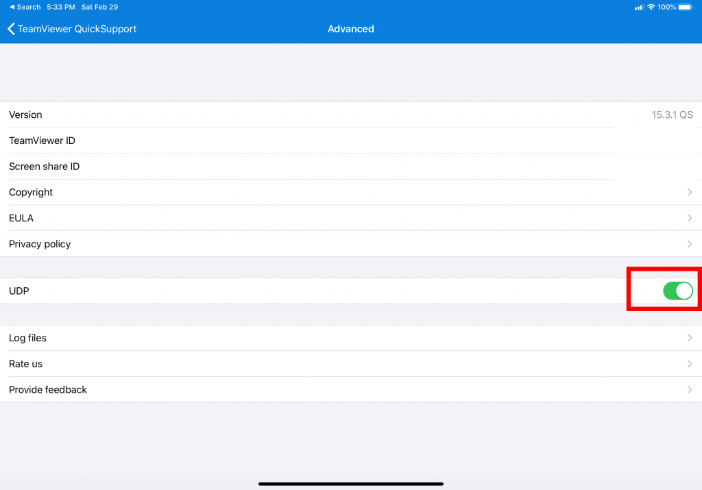 - Disable the UDP Slider by turning it off as shown in the red square below.