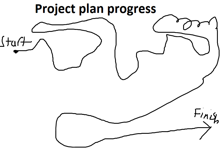 Projects don’t move in a straight line and project plans are rarely accurate. Software development is full of surprises, new requirements and changes no one ever predicts. It’s only the simplest projects with a clear scope and less than 5 people involved that go to plan. They are as a common as a 5 leaf clover.