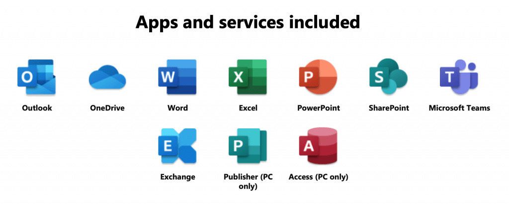 - Get desktop versions of Office apps: Outlook, Word, Excel, PowerPoint, OneNote (plus Access and Publisher for PC only).